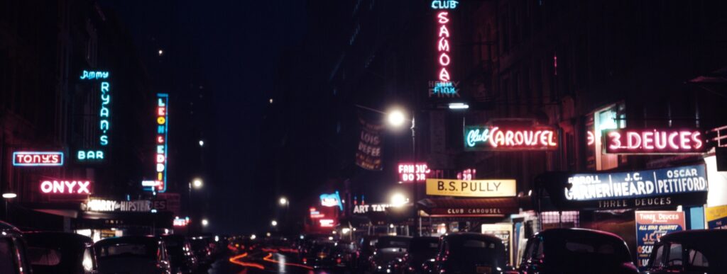 …Нью-Йорк 1948 года был городом контрастов: началось строительство здания Организации Объединенных Наций, губернатор Нью-Йорка Дьюи, казалось, нацелился на кресло в Белом Доме, а в Мидтауне Манхэттена пышно цвела ночная жизнь. Там были фешенебельные клубы, ночные и джазовые клубы, и повсеместно играла живая музыка. Были и танцевальные залы, где завсегдатаи могли потанцевать со штатными танцовщицами, залы вроде «Савой», в которых играла лучшая музыка того времени. Можно было послушать музыку любого стиля — кантри, поп, джаз, латиноамериканская музыка — всё для того, чтобы клиент был доволен. Палладиум находился на углу 53-й Уэст Стрит и Бродвея.